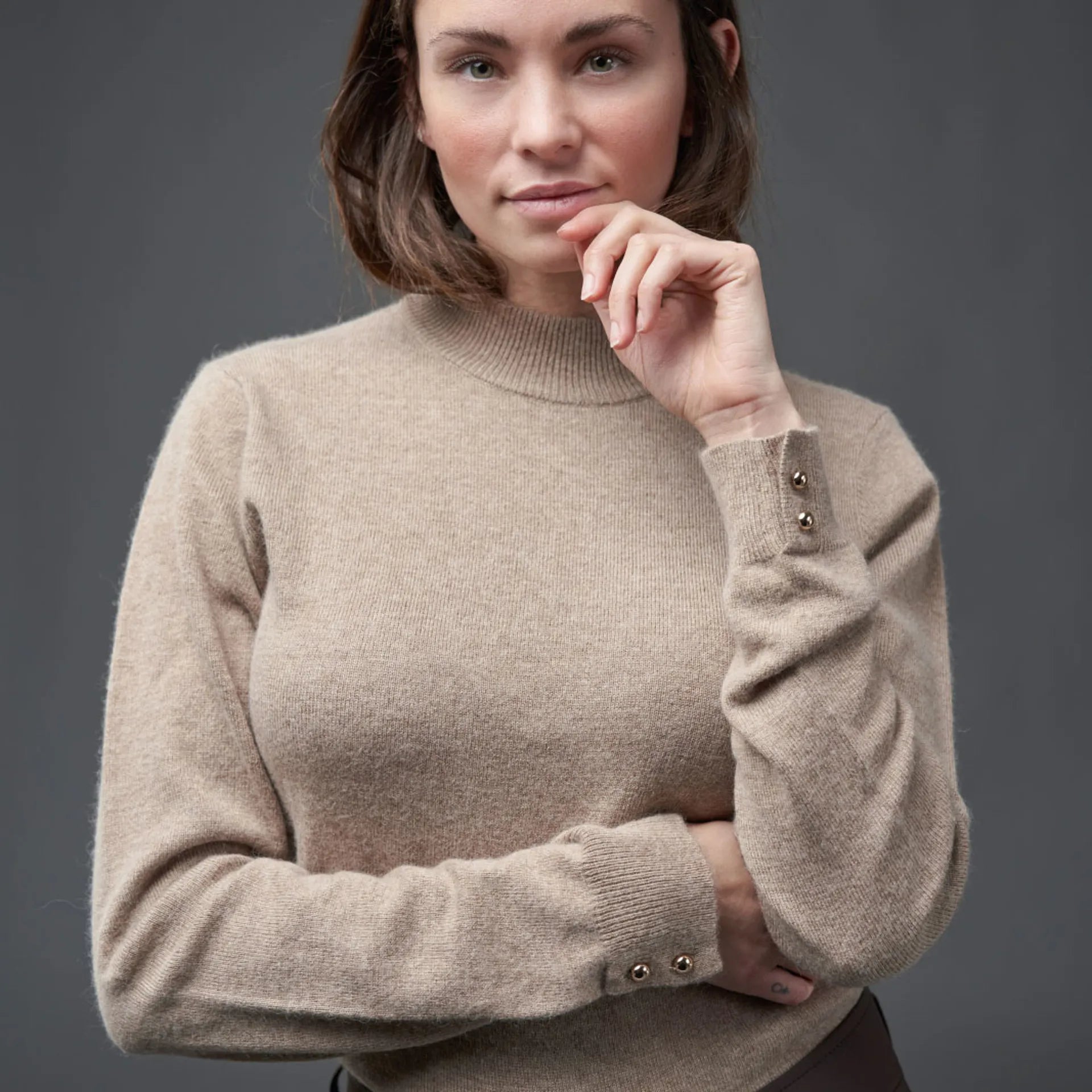 Sofistikerad stickad tröja i mjuk mohairblandning i en vacker sandstensmelerad nyans. Den tunna och eleganta strukturen ger en stilren, klädsam finish som enkelt lyfter vilken outfit som helst – både i och utanför stallet.