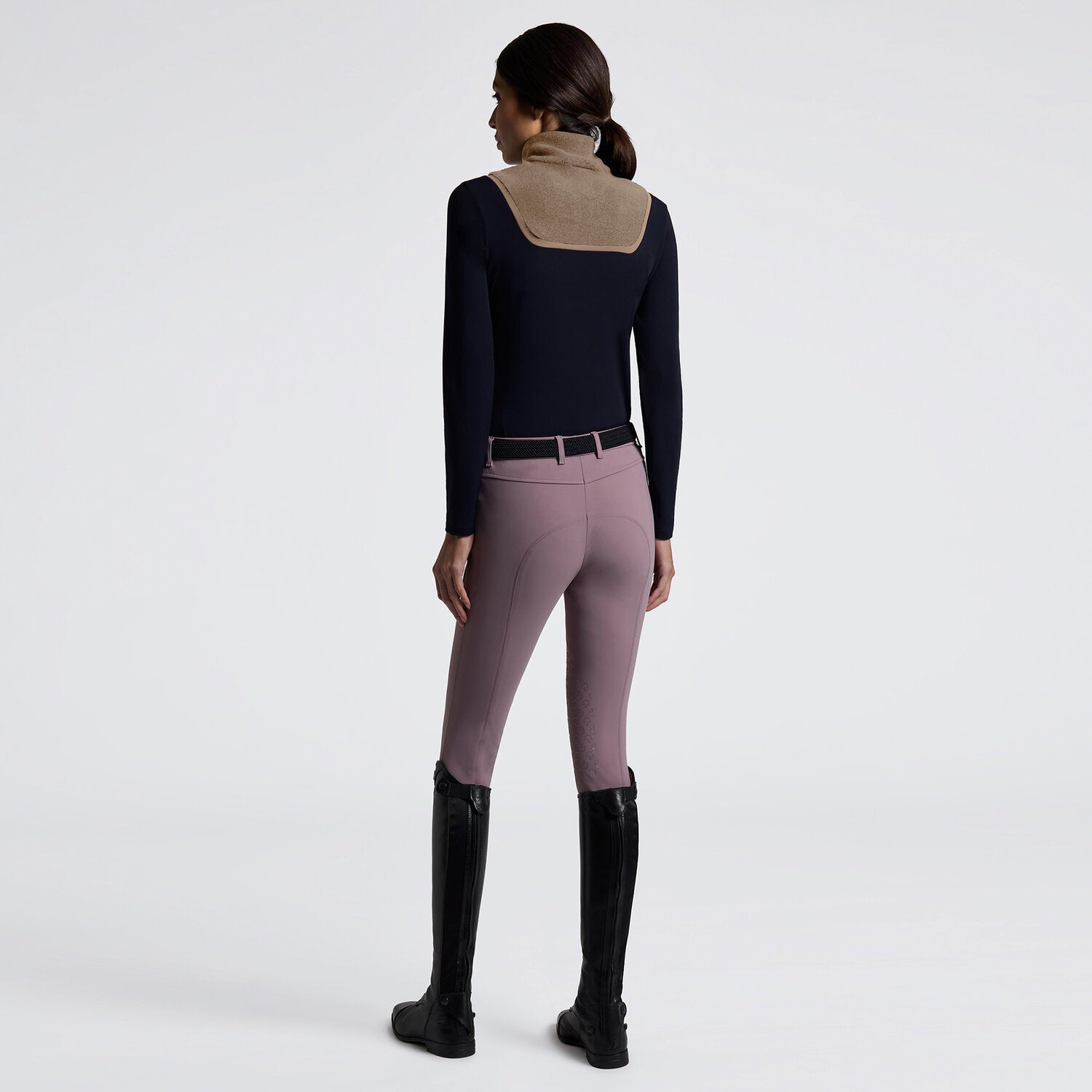 Cavalleria Toscana långärmad träningspolo för dam i jersey med fleecepanel är designad för att ge värme, komfort och stil under kyligare dagar. Den är tillverkad i tekniskt jerseytyg och har en mjuk fleeceinsats över bröstet för extra värmeskydd. Designen kompletteras av en värmeförseglad dragkedja framtill och en hög krage som skyddar mot vind samtidigt som den ger en elegant silhuett. Kontrastpasspoaler, gummidetaljer och Cavalleria Toscana-logotypen på ärmen förhöjer det tekniska utförandet. Denna polo kombinerar sportig estetik med funktionell design – perfekt för utomhusträning och ridning i svalare väder.