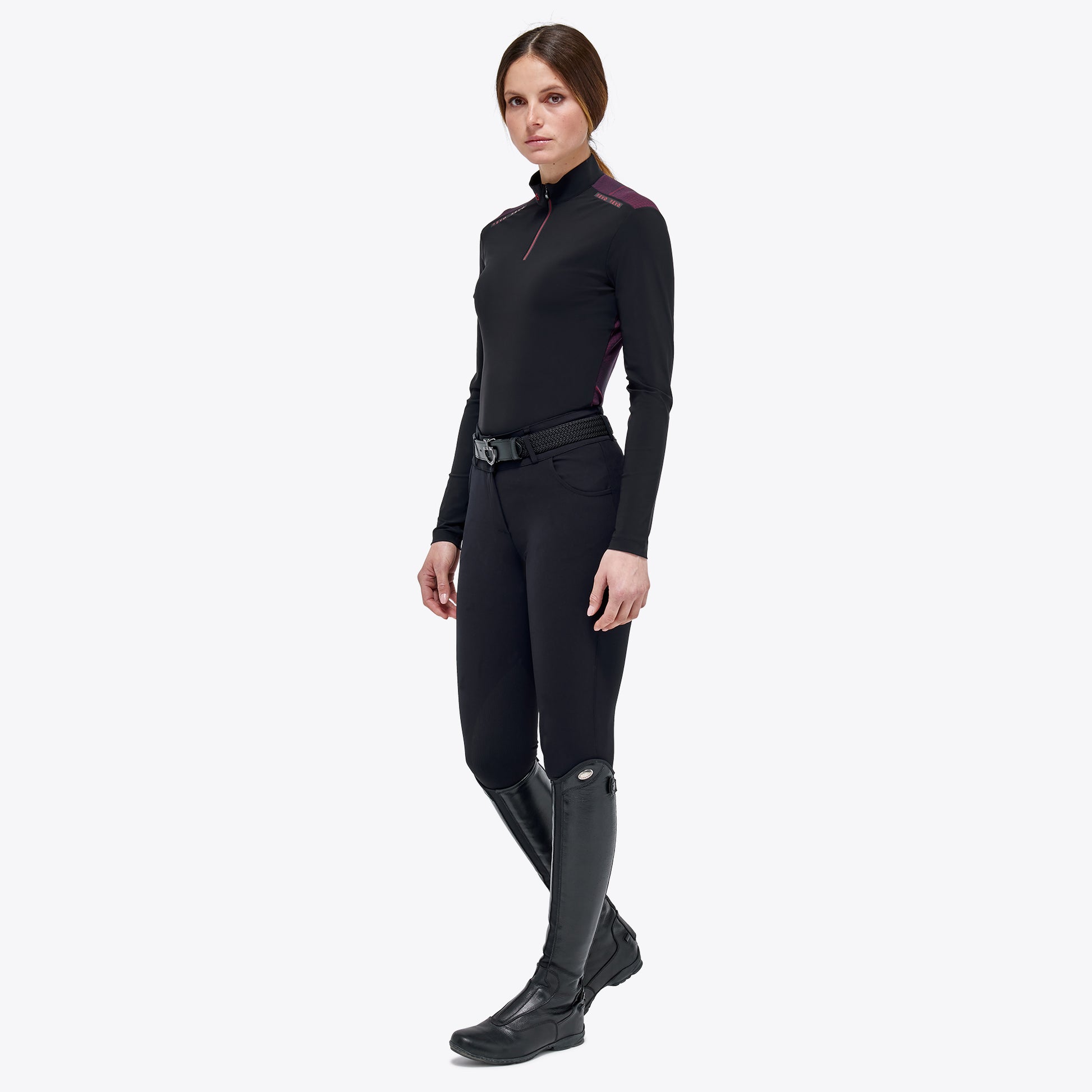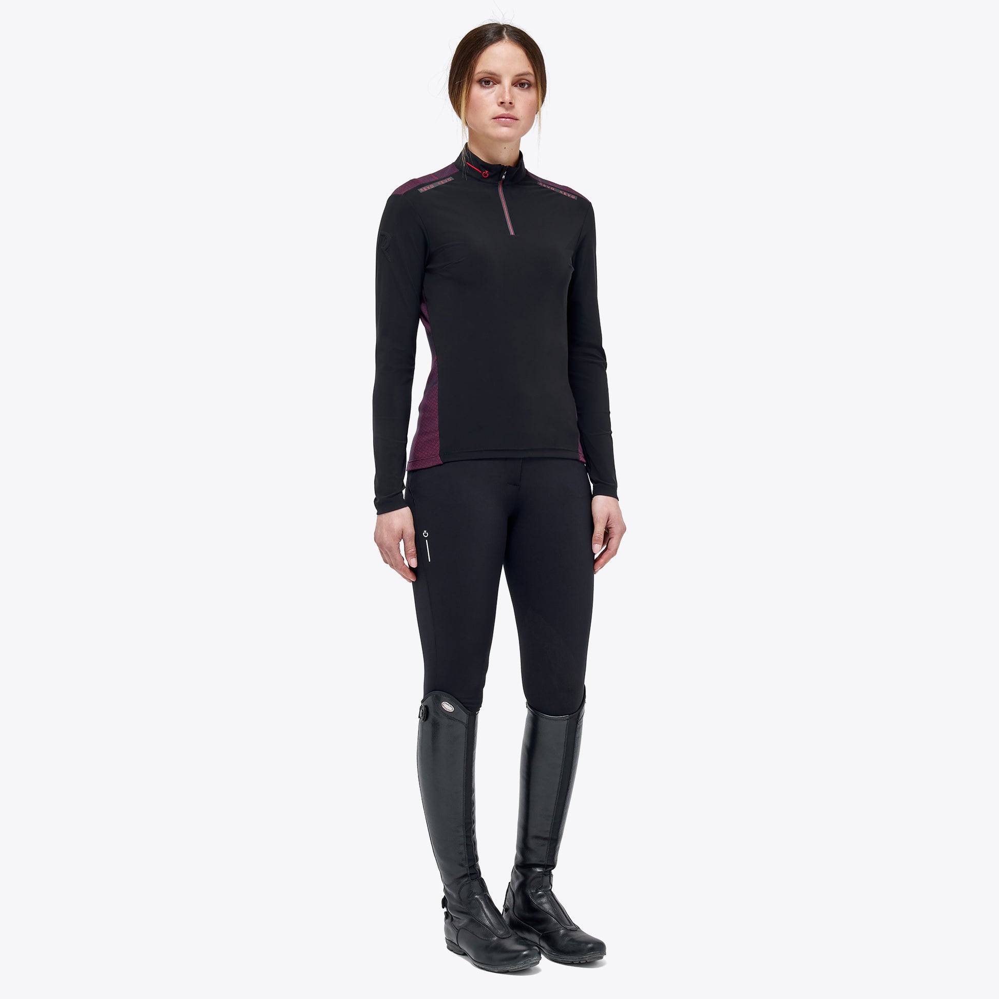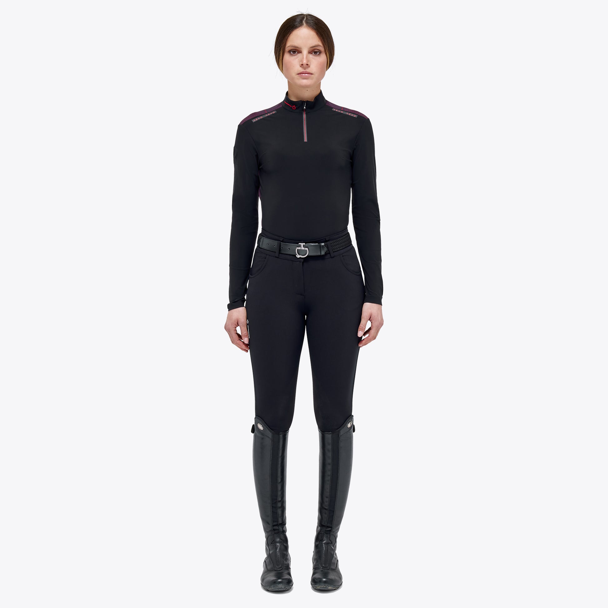 This polo shirt features a performance construction that offers maximum comfort during riding, and serves as a base layer during colder months. Made of technical REVO knit that feels pleasant against the skin, the model has a close-fitting design with a high collar, a quarter-zip set in heat-activated seam tape, and back and sides finished in contrast-colour 3D knit. CT embroidery and REVO prints are distinctive graphic details.