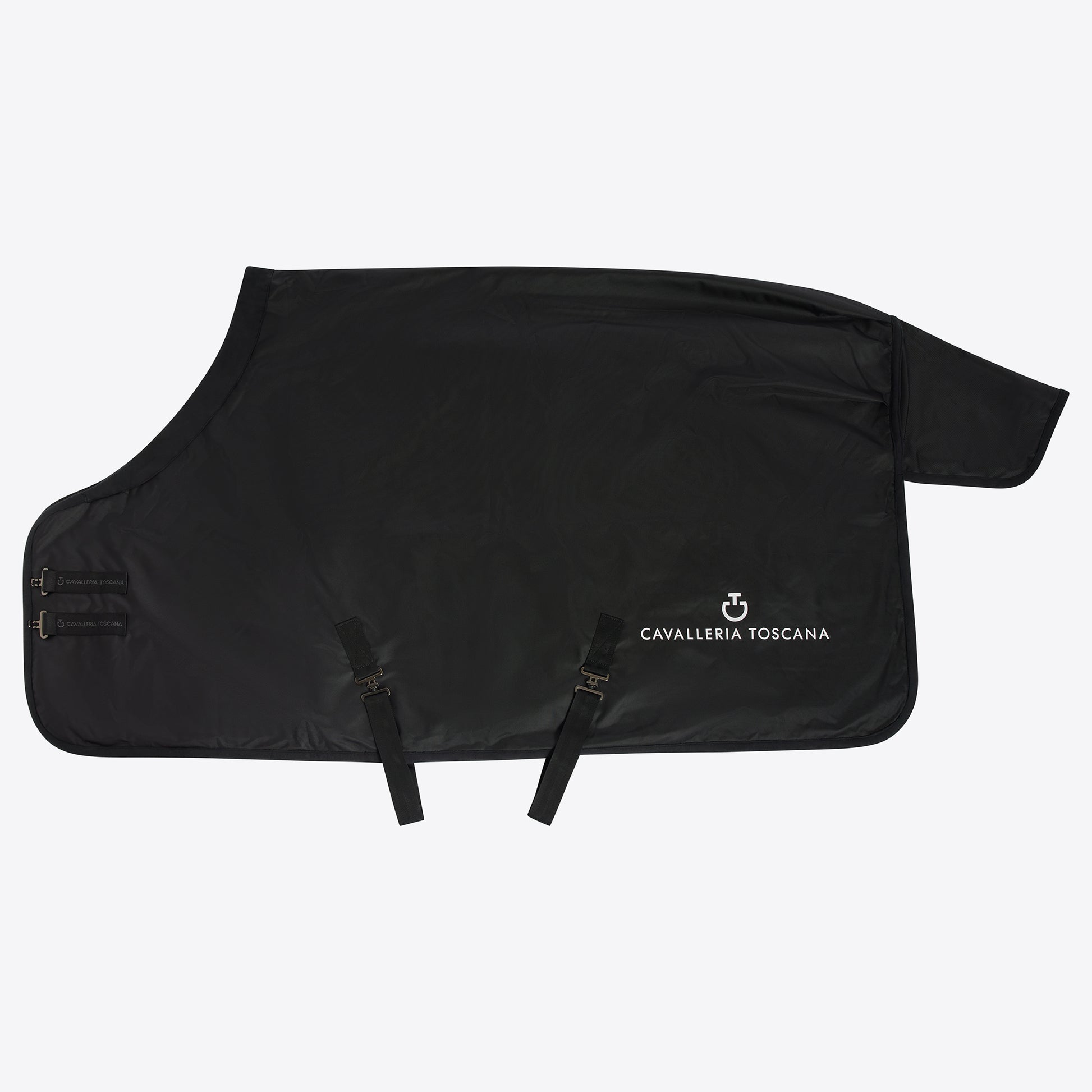 Cavalleria Toscana vattentätt hästtäcke med fleecefoder, glansig yta och snygg logotyp. Ett bra täcke att ha med på tävling då det passar perfekt som ett vattentätt stalltäcke och är snyggt att ta med din häst på en promenad i under ruggiga dagar. Täcket är designat för att ge din häst maximalt skydd och komfort.