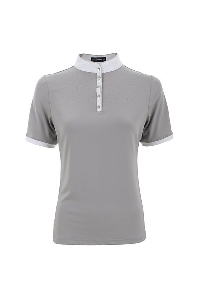 Knäppningen framtill stängs med Cavallo-tryckknappar för en både praktisk och stilren känsla. Meshpaneler under armarna säkerställer utmärkt luftcirkulation och håller dig bekväm även under intensiva tävlingsmoment. På baksidan av kragen finns en liten, silverfärgad Cavallo-dekor av gnistrande strass som ger den perfekta avslutande detaljen.