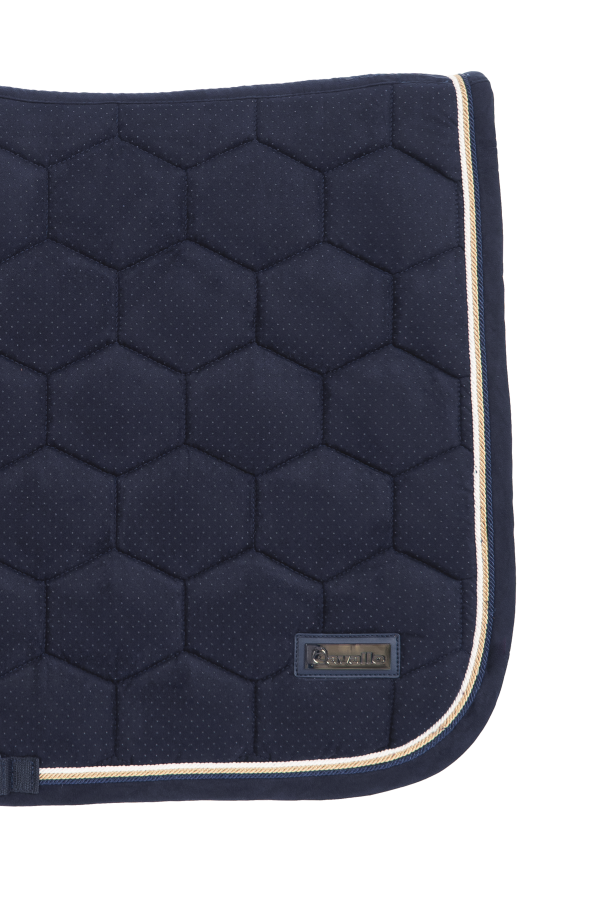 Detta schabrak har en elegant, heltäckande diamantquiltning som ger ett sofistikerat och tidlöst uttryck. Det ramas in av tre smala passpoaler i subtila kontrastfärger, vilket förhöjer den exklusiva designen. På den bakre delen pryder ett litet Cavallo-märke i gunmetal-look och ger en stilren, modern finish.