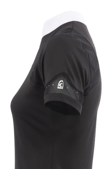 Ett extra meshparti vid ärmslutet ger ännu bättre ventilation, medan vänster ärm pryds av Cavallos stigbygeltryck och gnistrande strasstenar. I nacken bak skimrar dessutom ett dekorativt strassmotiv i silver.