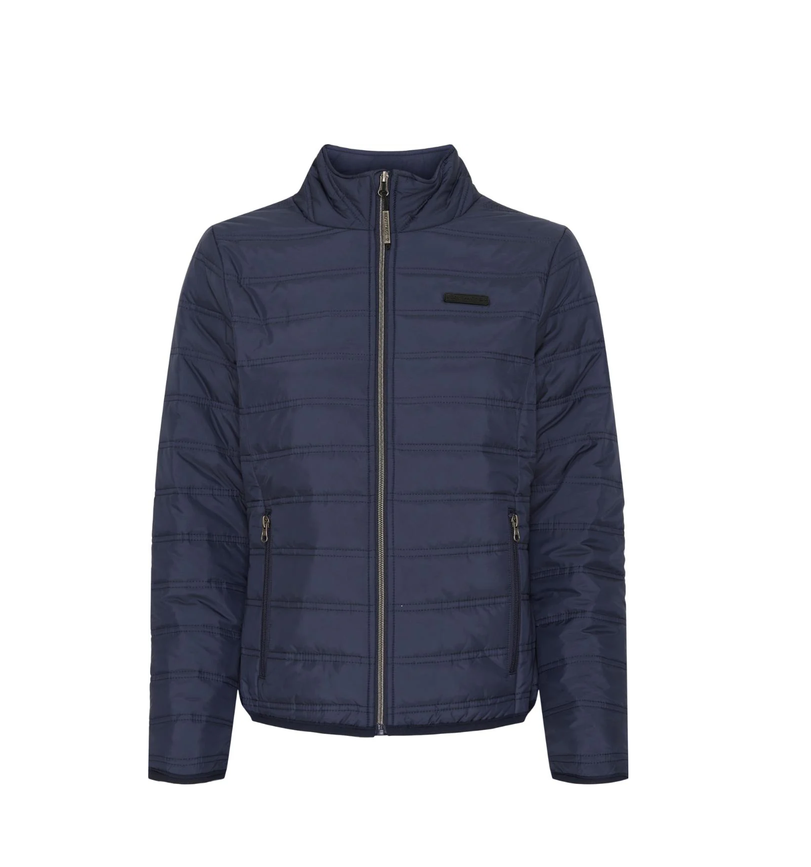 Lätt vadderad kort jacka med ståkrage. Den har genomgående dragkedja framtill och sidfickor med dragkedja. Den dubbla horisontella quiltningen ger ett snyggt och strukturerat uttryck. På bröstet sitter en gummilogobadge. En perfekt övergångsjacka för vår- och höstmånaderna.