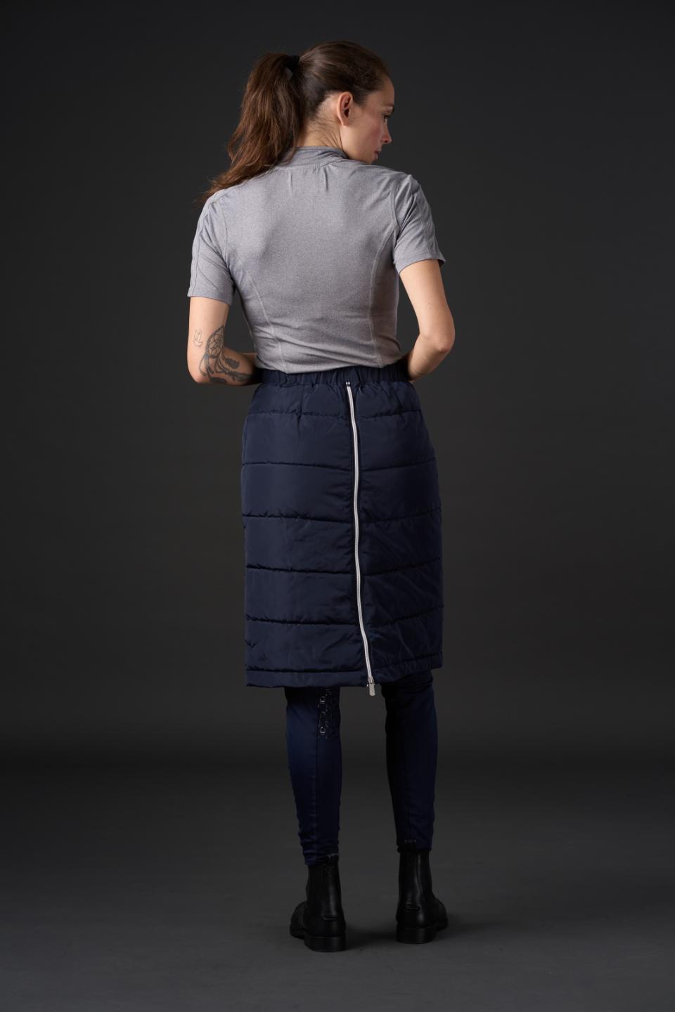 Detta eleganta, vadderade ridkjolen är designad för att ge både komfort och funktion under kalla dagar i stallet och i sadeln. Med dragkedjor fram och bak kan du enkelt anpassa nederdelen för ridning, samtidigt som det vattenavvisande och vindtäta materialet skyddar mot väder och vind.