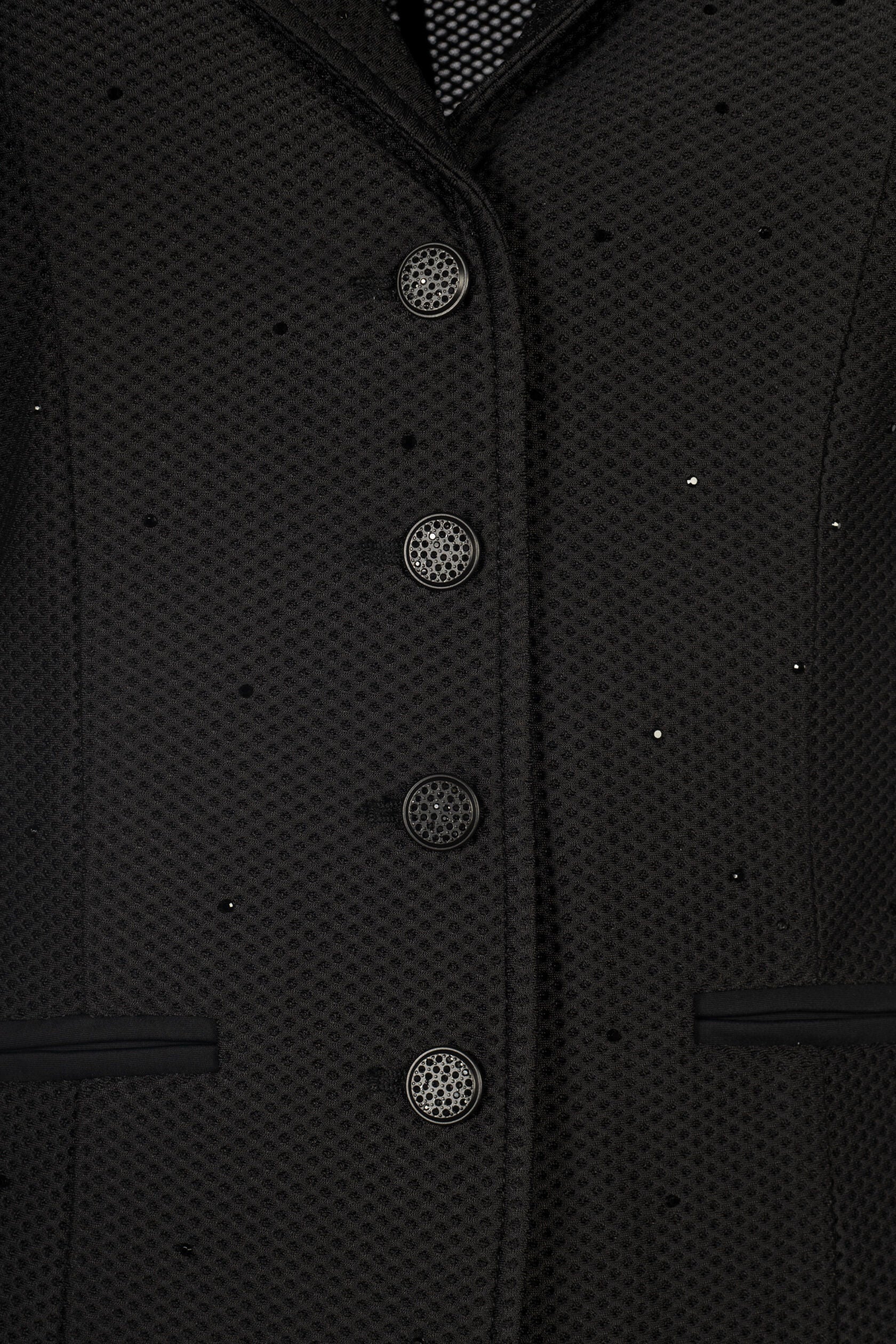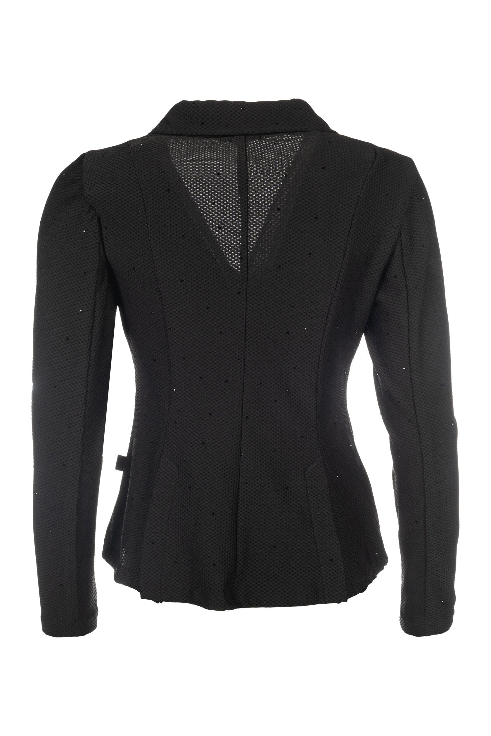 Tävlingskavajen Crystal förenar stil och prestanda för ett fulländat intryck på banan. Det lätta och andningsbara meshmaterialet ger maximal komfort, även under varma tävlingsdagar, medan den figursydda passformen och de integrerade ridslitsarna erbjuder optimal rörelsefrihet i sadeln.