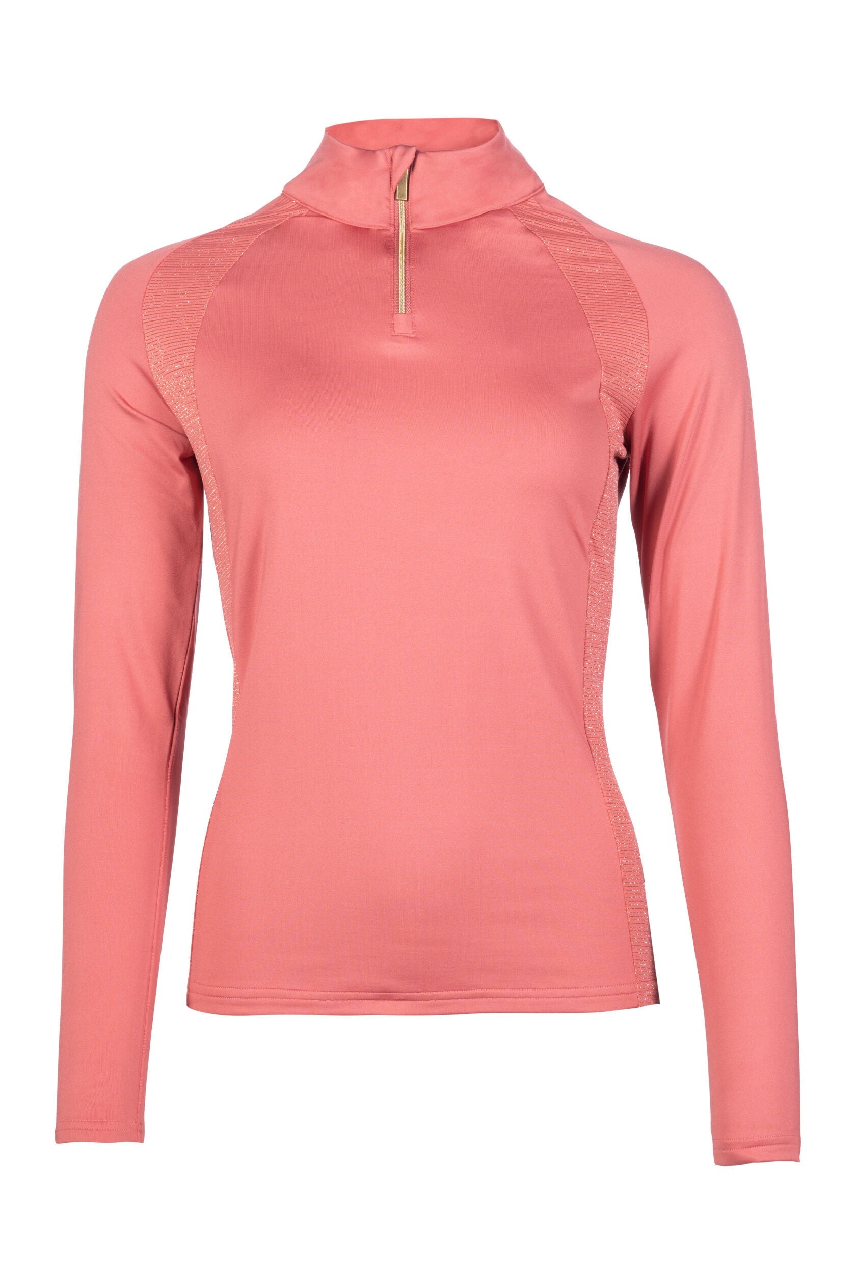 Den här tröjan kombinerar stil och funktion på bästa sätt. Det elastiska materialet ger en perfekt passform som följer kroppens rörelser, samtidigt som tyget har andasfunktion för optimal komfort under aktivitet. Den korta dragkedjan framtill gör den både praktisk och elegant, medan glittrande detaljer ger en exklusiv touch som lyfter hela looken.