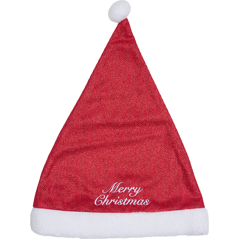 Tomteluva för ryttaren med en touch av glitter eftersom meshtyget kommer med glittereffekt. Merry Christmas broderi framtill och vit fuskpälskant för den rätta julstämningen och nog stor för att ha på hjlälmen.
