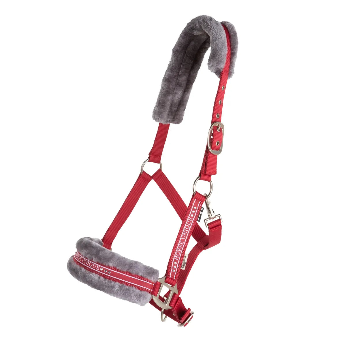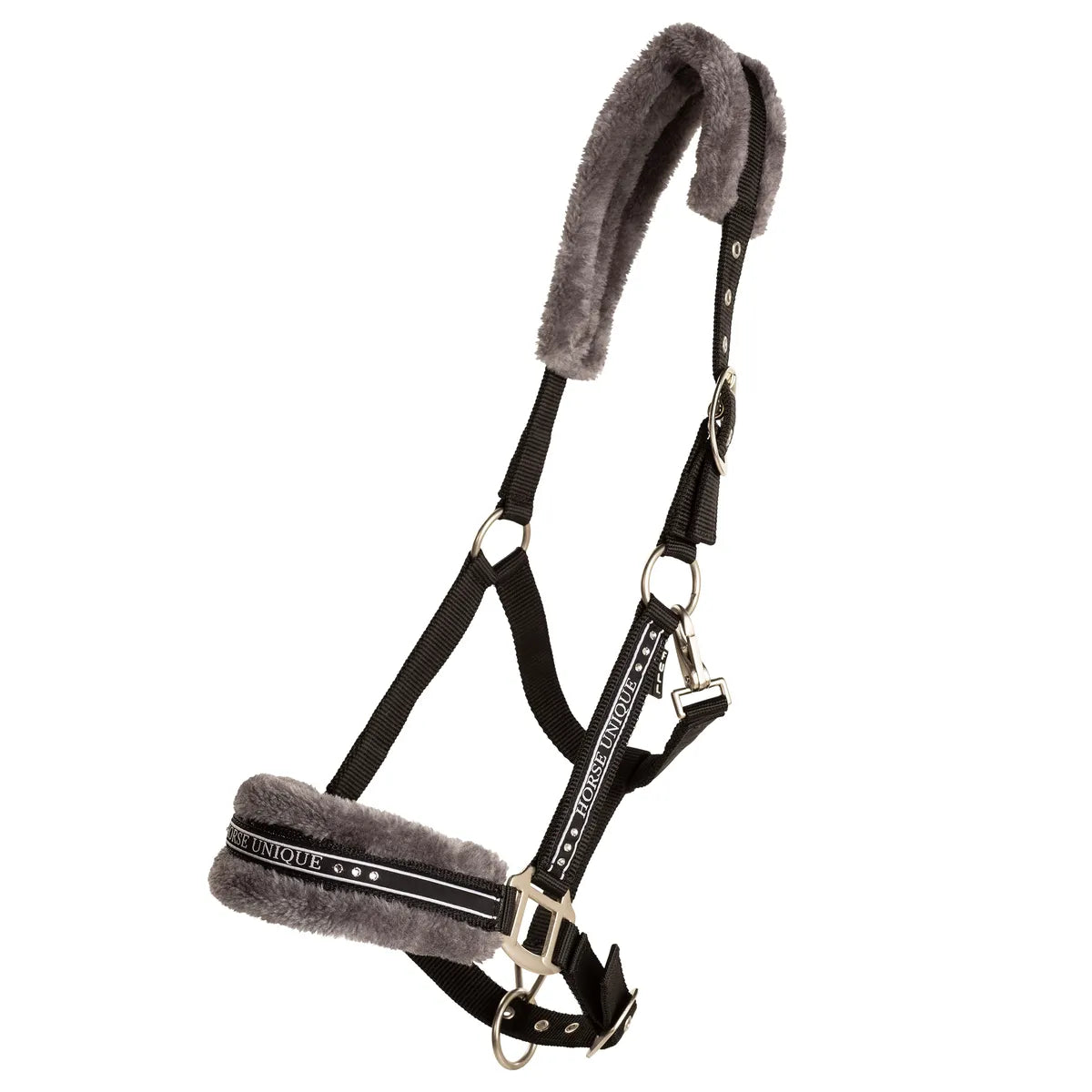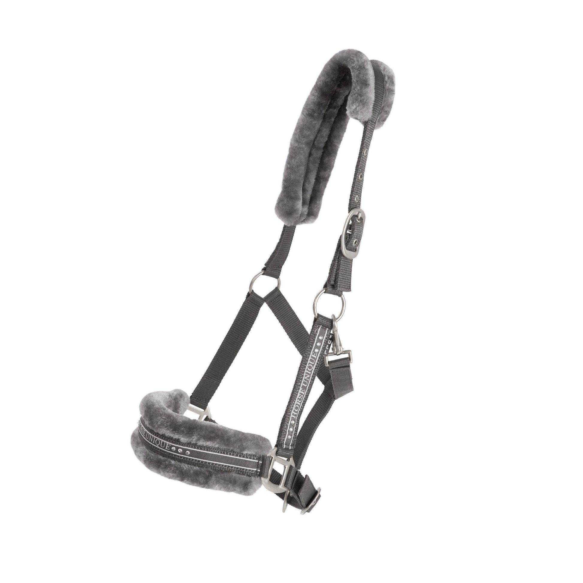 Grimma i polypropylene i många läckra färger med mjukt ludd mot nos och nacke. Stenar på sidostycken och nos, ställbar nack- och nosrem med spännen i matt silver.