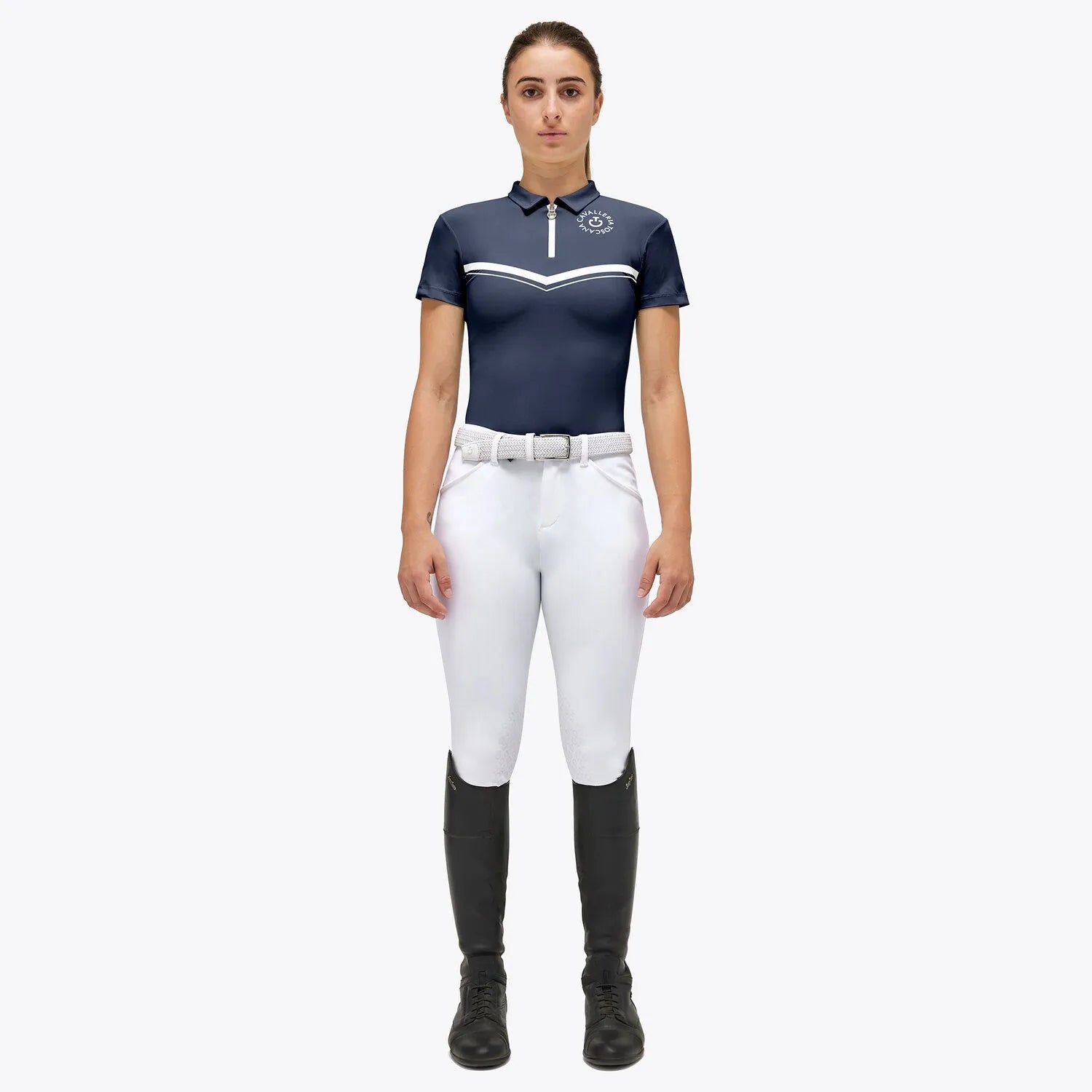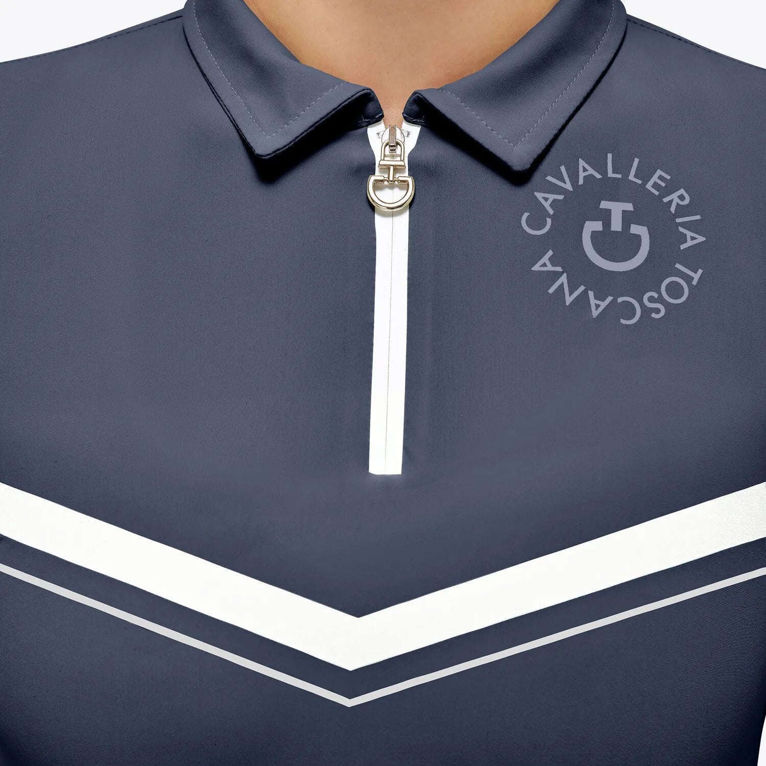 The Cavalleria ToscanaCT Orbit Print jersey Zip Training Polo is the perfect choice for young horse lovers. Made with high quality materials, this garment guarantees maximum comfort during training thanks to its breathability. Furthermore, its "Fast-drying, Easy-Care" technology makes it easy to care for and quick to dry, perfect for mothers looking for resistant and practical garments for their daughters. Thanks to its elegant design and functionality, the Cavalleria Toscana training polo for girls is a must-have for every young rider.