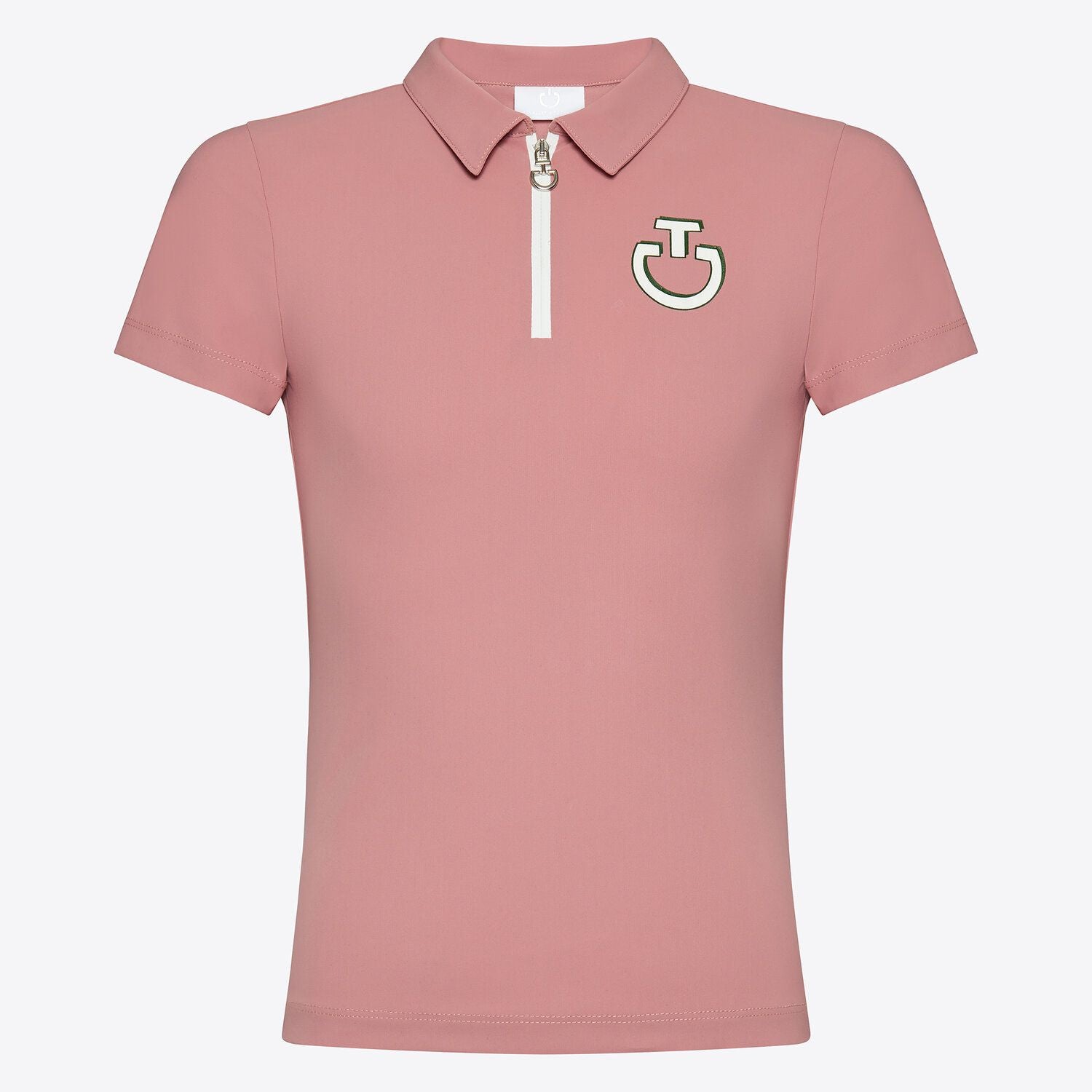 The Cavalleria Toscana girls' technical training polo is designed to offer optimal comfort and performance during equestrian activities. Made from high-quality technical jersey fabric, this polo ensures durability and breathability, making it ideal for intense training sessions. The design features a central white rubberized half-zip that facilitates easy wear and temperature regulation. The Cavalleria Toscana silicone logos in relief are positioned on the chest and back, giving a distinctive and refined look. This polo combines functionality and style, making it an essential piece in every young rider's wardrobe. Easy to maintain, this garment is perfect for those who seek the best in terms of quality and design during daily training.