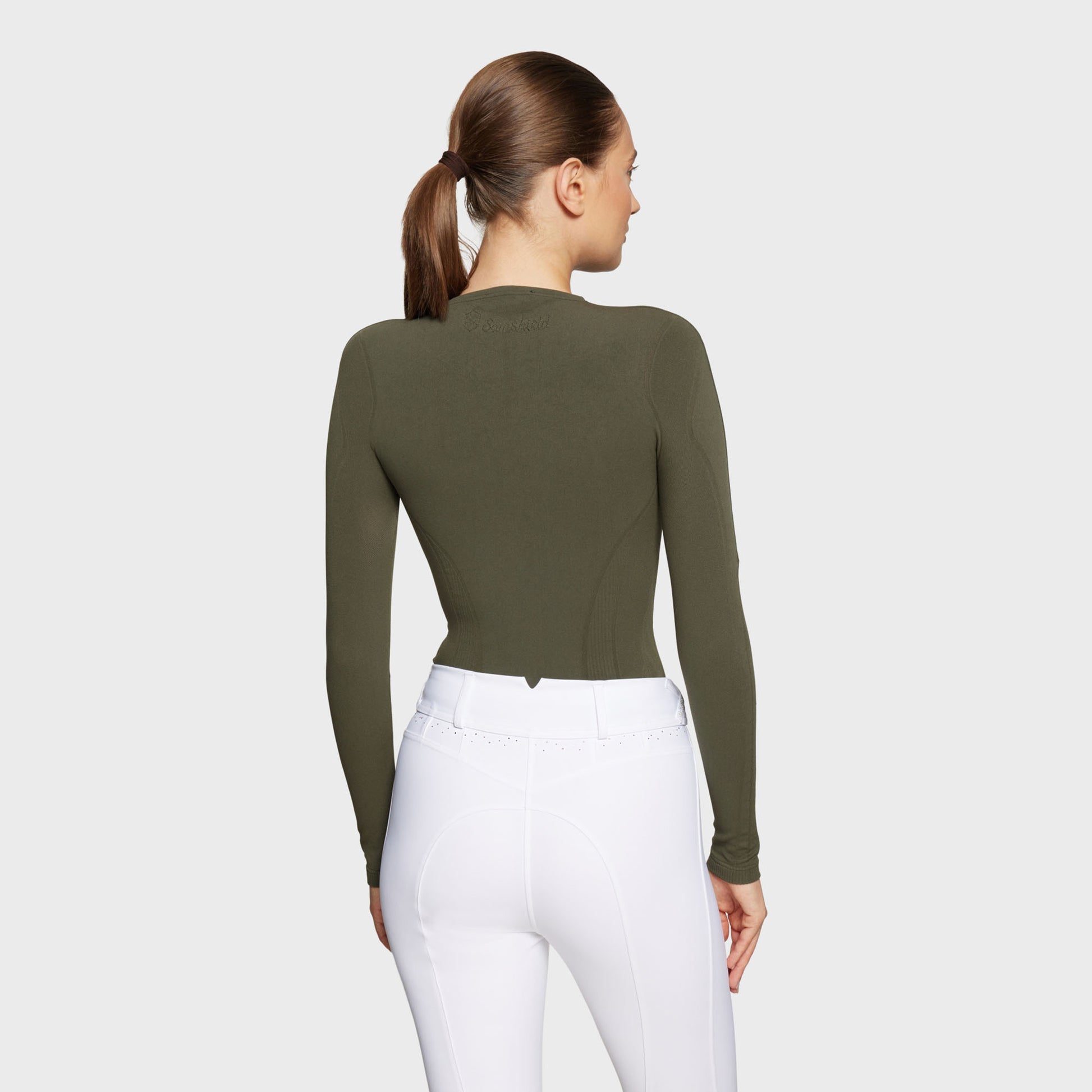 Sömlös polotröja tillverkad i ett kroppsnära, komprimerande material som ger en smickrande passform och maximal komfort.