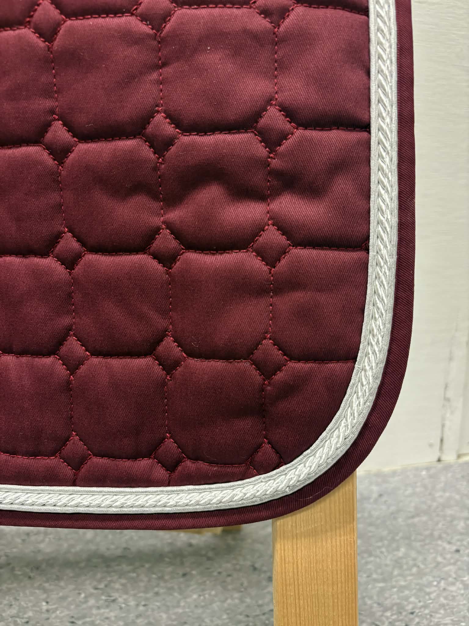 Sportigt Octagon-quiltat schabrak med både utsida och insida i tålig bomullstwill. Rejäl filt inuti ger schabraket god stadga och bra passform. Bred vit twistad silkespasspoal, två mindre silvervita passpoaler och Protector brodyr längs ryggen ger schabraket en elegant look. Sadelstrap med kardborre. Schabraket lämpar sig väl för att brodera på. Tvätt 30 grader.