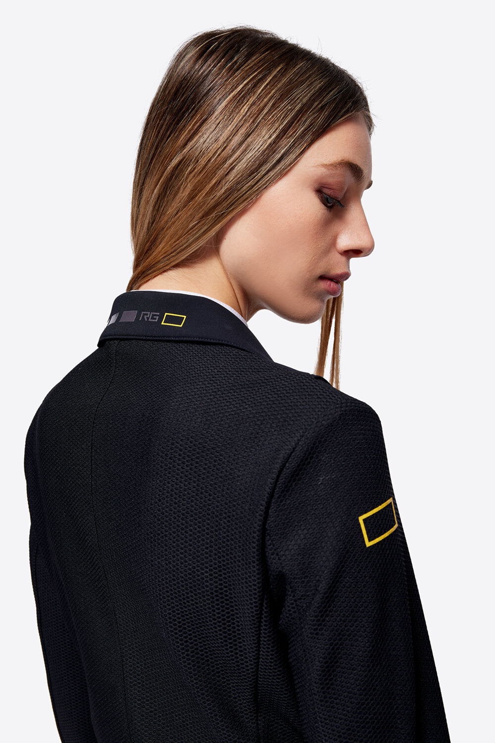Det är en verkligt dynamisk kavaj som anpassar sig efter kroppen och ger full rörelsefrihet tack vare den innovativa kombinationen av jersey och mesh. Designen inkluderar en stilren krage med slag, en smidig dragkedjestängning framtill och ett RG-logo på höger ärm som ger en exklusiv finish.