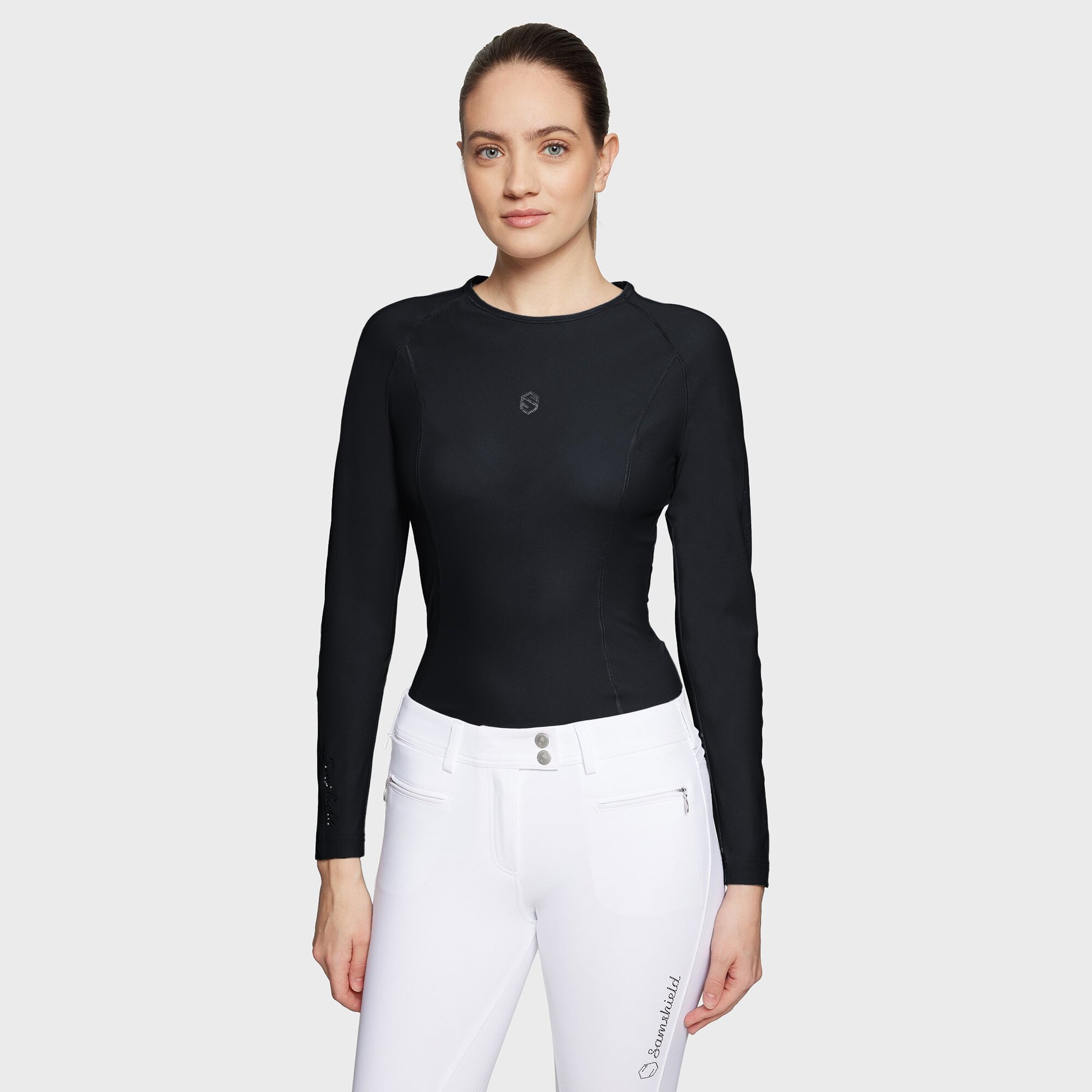 Evy Air Flower är det perfekta baslagret för träning – designat för maximal komfort och andningsförmåga. Det snabbtorkande, fyrvägsstretchiga materialet ger rörelsefrihet och hållbarhet tack vare dubbla sömmar och extra slitstarkt tyg. Den vackra blommiga perforeringsdesignen längs ärmarna och ryggpanelen ger en elegant touch, medan Swarovski Samshield-loggan på bröstet fulländar looken. Lättskött och maskintvättbar i 30 °C.
