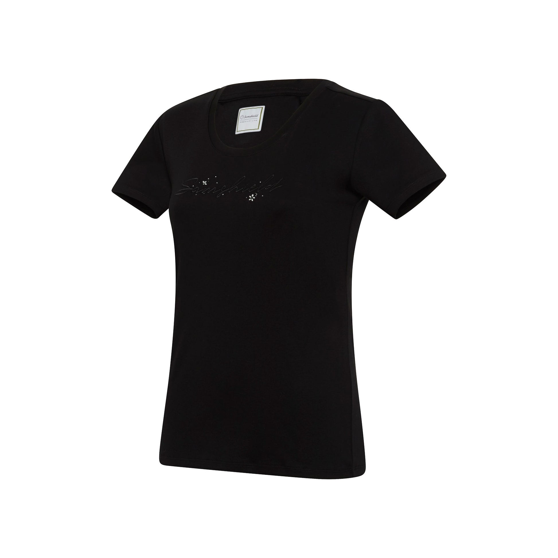 Axella Script Women's T-shirt är tillverkad i 100 % bomull, vilket gör den både otroligt bekväm, slitstark och hållbar över tid. Samshield-logotypen pryder bröstet i en kombination av Swarovski-kristaller och broderi, vilket ger en elegant och stilren finish. Perfekt både för träning och till vardags – ett självklart basplagg i varje ryttares garderob.